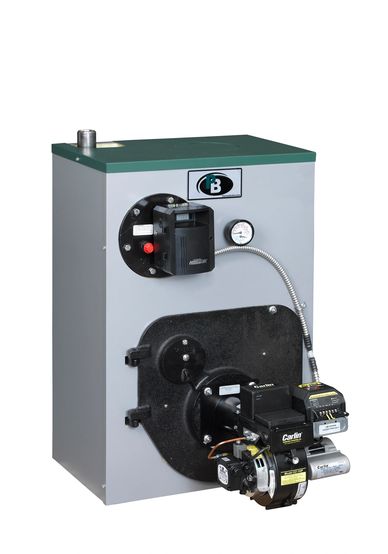 The Series WBV® residential, oil-fired boilers are available for use with both hot water and steam systems and designed for natural draft (chimney) venting. The fully-packaged or knockdown boilers are available in 3 sizes (3-5 sections) with 8 firing rates.